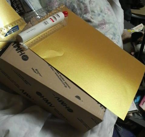 そんなことより、明日に迫った卒業ライブの衣装づくりです。現在、23:50、 日付が変わりそうです。バイト先の某均一低価格小売店で入手したキンキラの画用紙をつかって、これから一仕事。